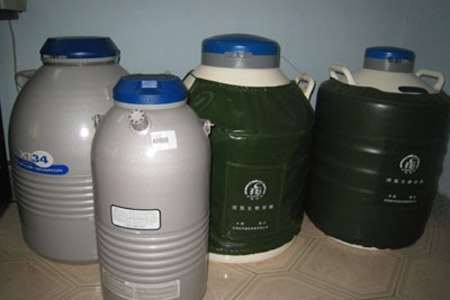Những lọ bảo quản tinh trùng tại Bệnh viện Nam học và hiếm muộn Hà Nội.